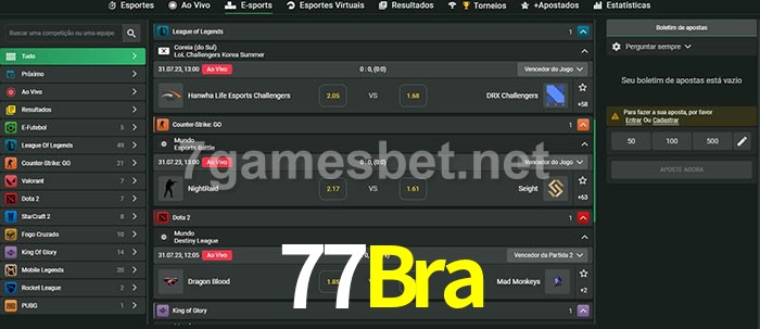 O 77Bra oferece uma grande seleção de opções de apostas em e-sports com probabilidades competitivas